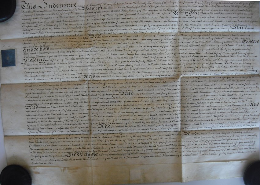 their Common seal and to the other part thereof remaining with the said Dean and Chapter the said John Caning his hand and seal interchangeably have put the day and year