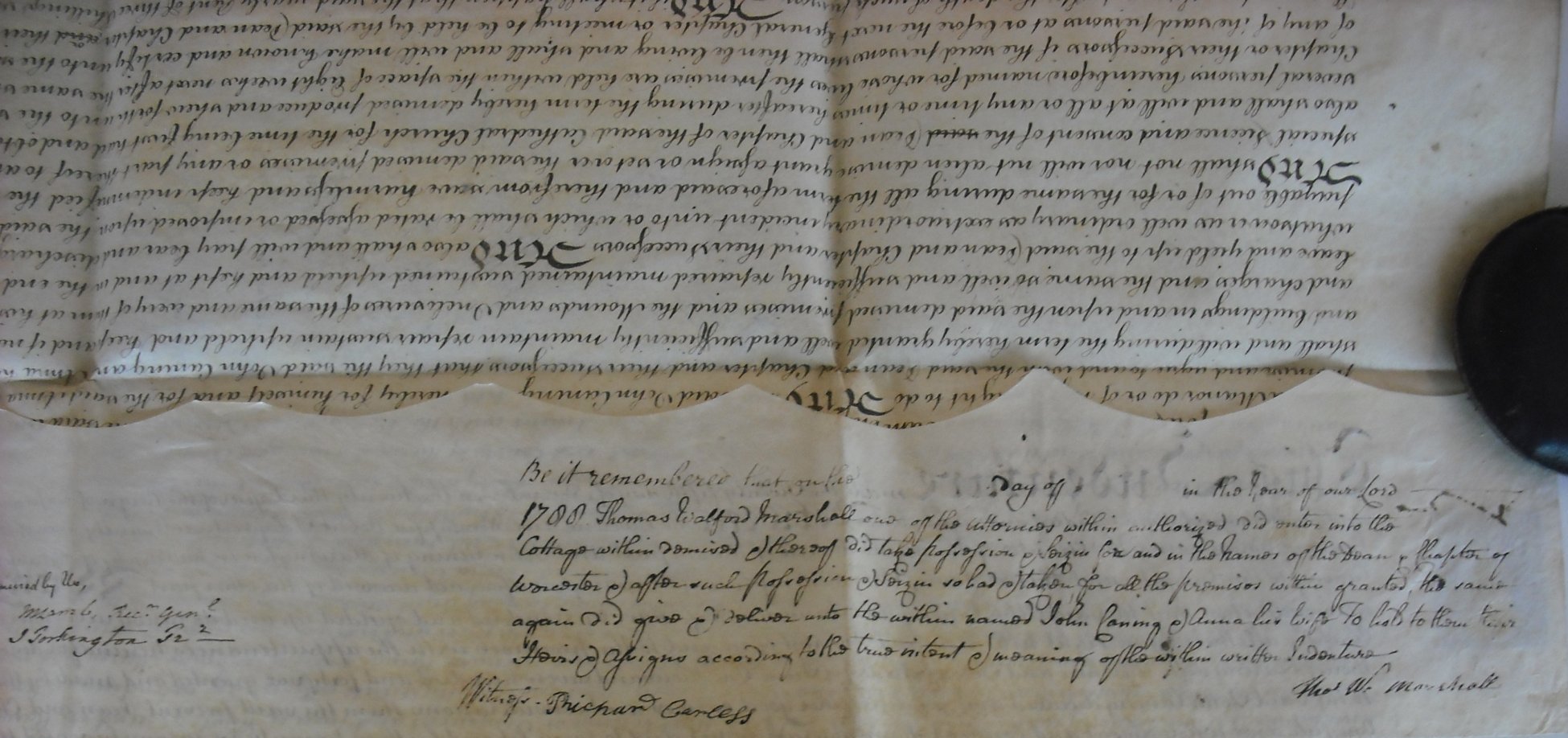 the said Dean and Chapter their Commen Seal and to the other part thereof remaining with the said Dean and Chapter the said John Marshall and John Careless their hands and seals inter changeably