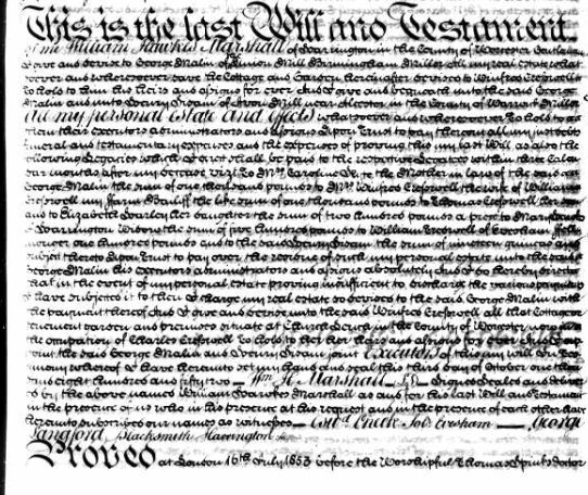 This page was created to house the will of Thomas Walford Marshall, the owner of Harvington Mill, who died in 1827 and William Hawkes Marshall who died in 1853. There are however many wills out there of Harvington folk which would have a natural home on this page hence its creation.